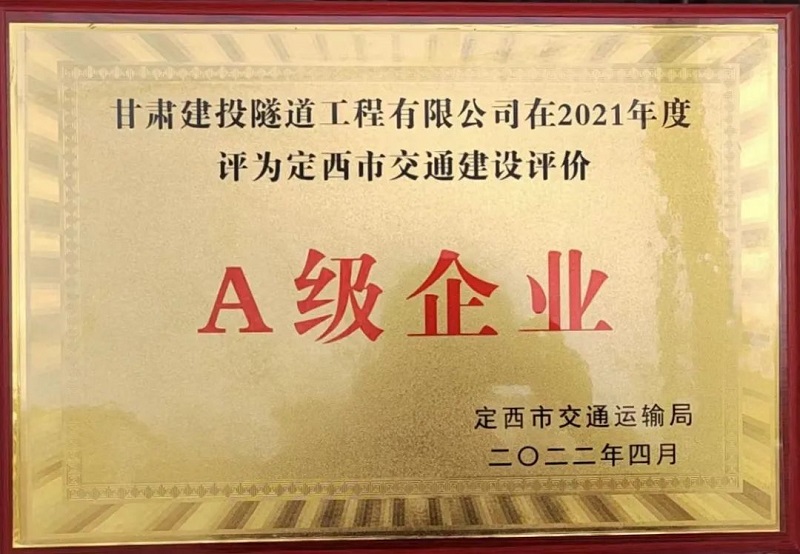 喜讯!隧道公司获评定西市“2021年度农村公路项目从业企业信用评价A级企业”荣誉称号!