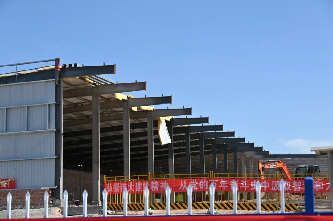 走进施工现场,更是一派繁忙景象,混凝土搅拌机轰鸣作业,施工人员战高温、抢工期,全力推进施工进度,综合楼、保鲜冷库、屠宰加工车间等正在紧张施工建设中……截至目前,综合楼主体砌体工程、安装预埋工程、窗框安装工程已全部完成,进入外墙保温施工阶段;联合车间主体结构施工全部完成,外墙板安装施工完成90%、砌体施工完成70%、地面施工完成50%。