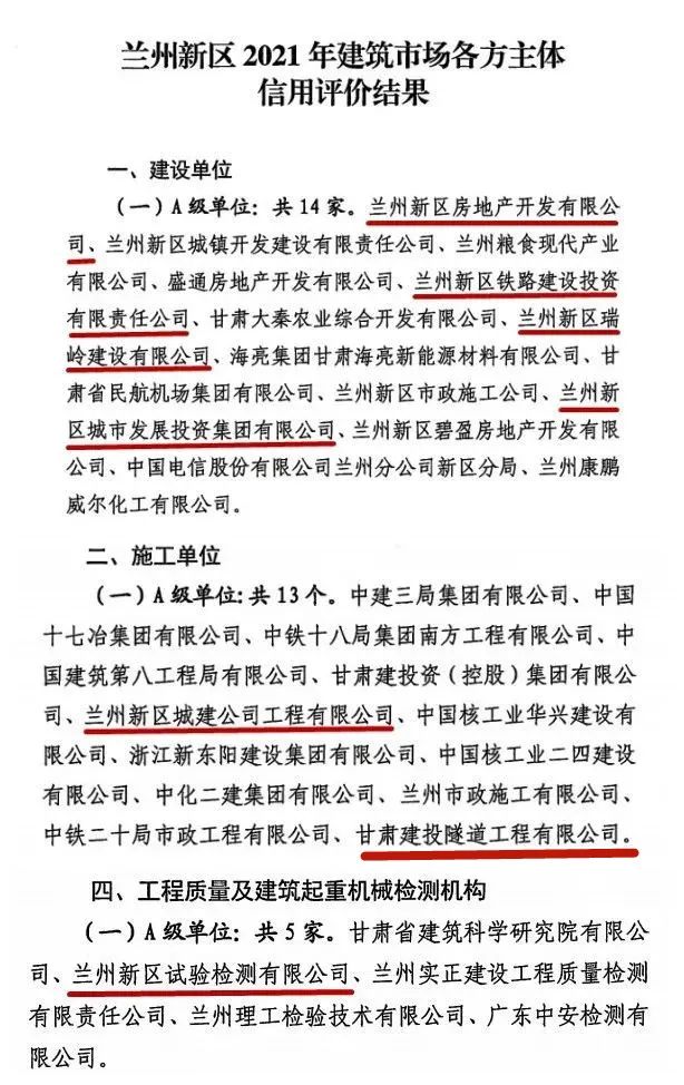 近日,兰州新区城乡建设和交通管理局发布了《关于公布兰州新区2021年建筑市场各方主体信用评价结果告知的函》(新城建交〔2022〕218号),隧道公司获评兰州新区2021年建筑市场A级施工单位。