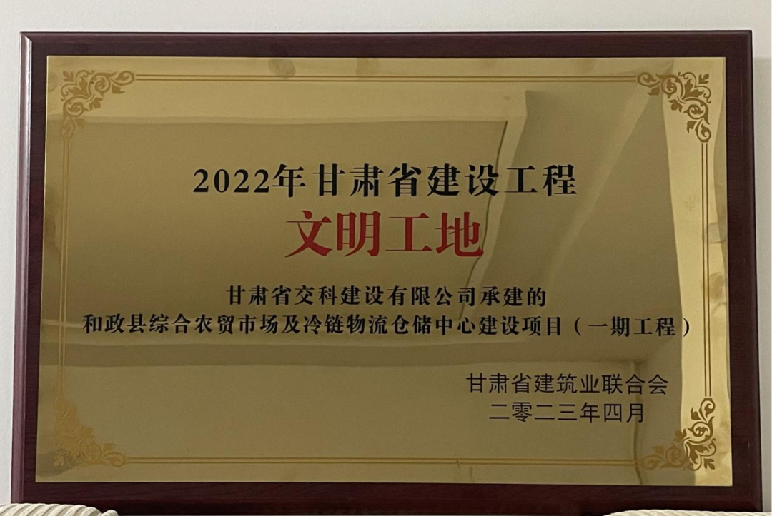 近日,甘肃省建筑协会公布,2022年度甘肃省建设工程文明工地评选结果,交科公司一公司和政县农贸市场项目榜上有名获评2022年度“甘肃省建设工程文明工地”荣誉称号!