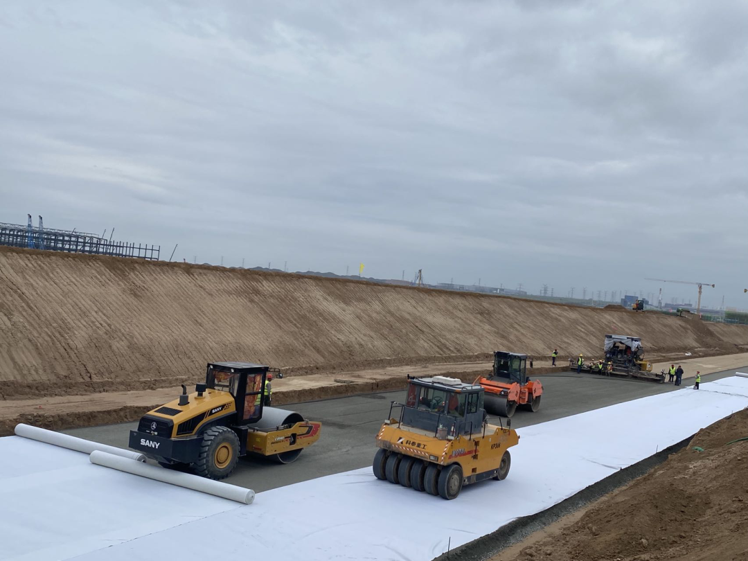 自进场以来,项目部在工期紧、横穿道路管线较多、现场施工困难重重的情况下,不等不靠,主动出击,积极主动对接协调相关单位,为项目建设争取了宝贵时间。项目部每周召开周例会,不定期召开碰头会、抢工推进会,及时总结工作,制定攻坚目标,明确任务分工,层层分解责任,推进各作业面“饱和式”施工,以最快的速度推进项目建设。目前,项目部正在全力完成水稳层2.25km摊铺作业和横穿管沟开挖,为沥青面层施工创造了有利条件。