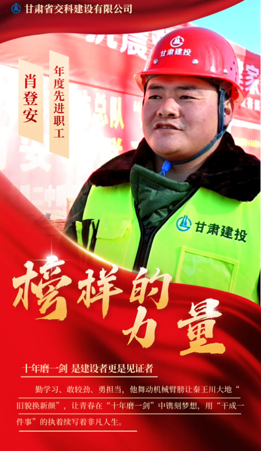 肖登安,2013年11月参加工作,现担任k1体育注册就送38元路政公司装载机司机。在项目施工中,他严格遵守机械操作规程,服从项目管理,踏实认真工作,苦练技能本领,十年来,第一批服务兰州新区发展建设的建设者中有他、第一支冲锋在前拉开项目建设的机械队伍中有他、第一个主动请缨前往积石山抗震救灾的建投青年中有他,他用十年磨一剑的韧劲,立志高远担大任,脚踏实地勇争先!