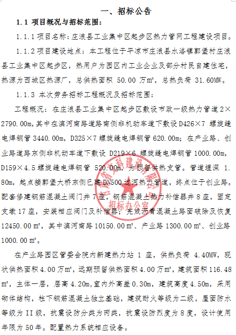 <h3>庄浪县工业集中区起步区热力管网工程建设项目</h3>