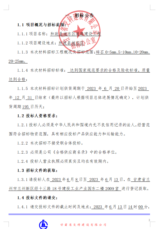 <h3>和政县城东区道路建设工程-碎石招标</h3>
