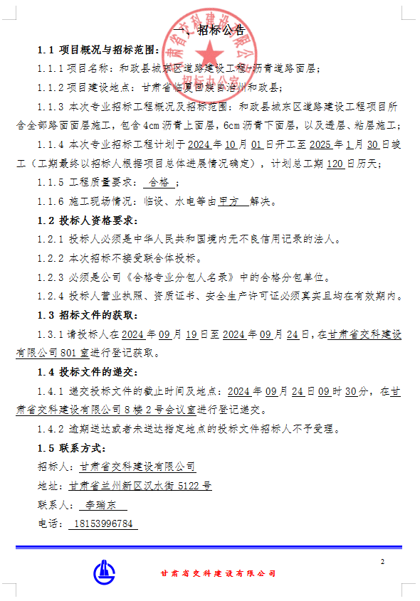 和政县城东区道路建设工程沥青道路面层-招标公告