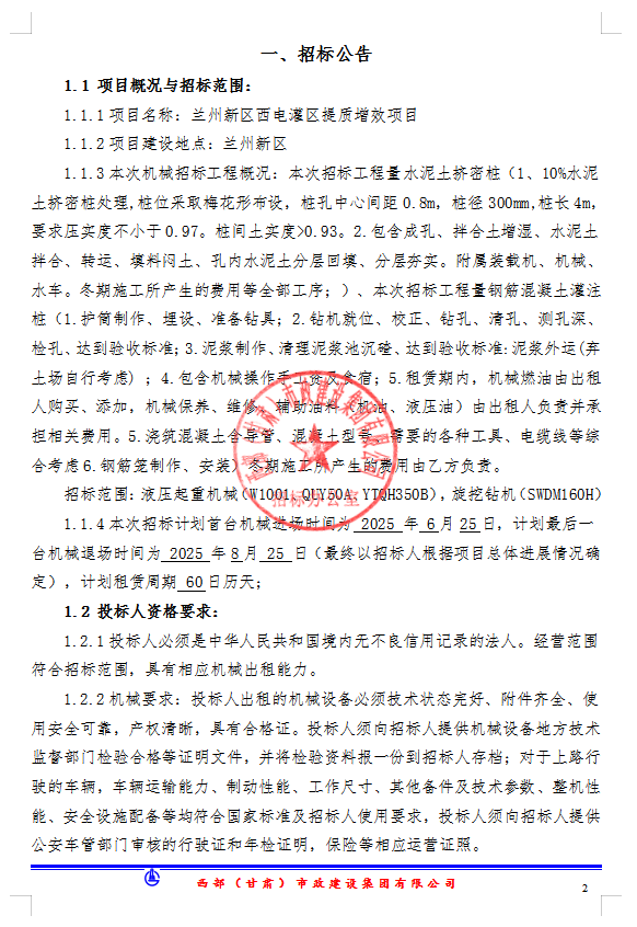 <h3>兰州新区西电灌区提质增效项目-机械租赁招标公告</h3>