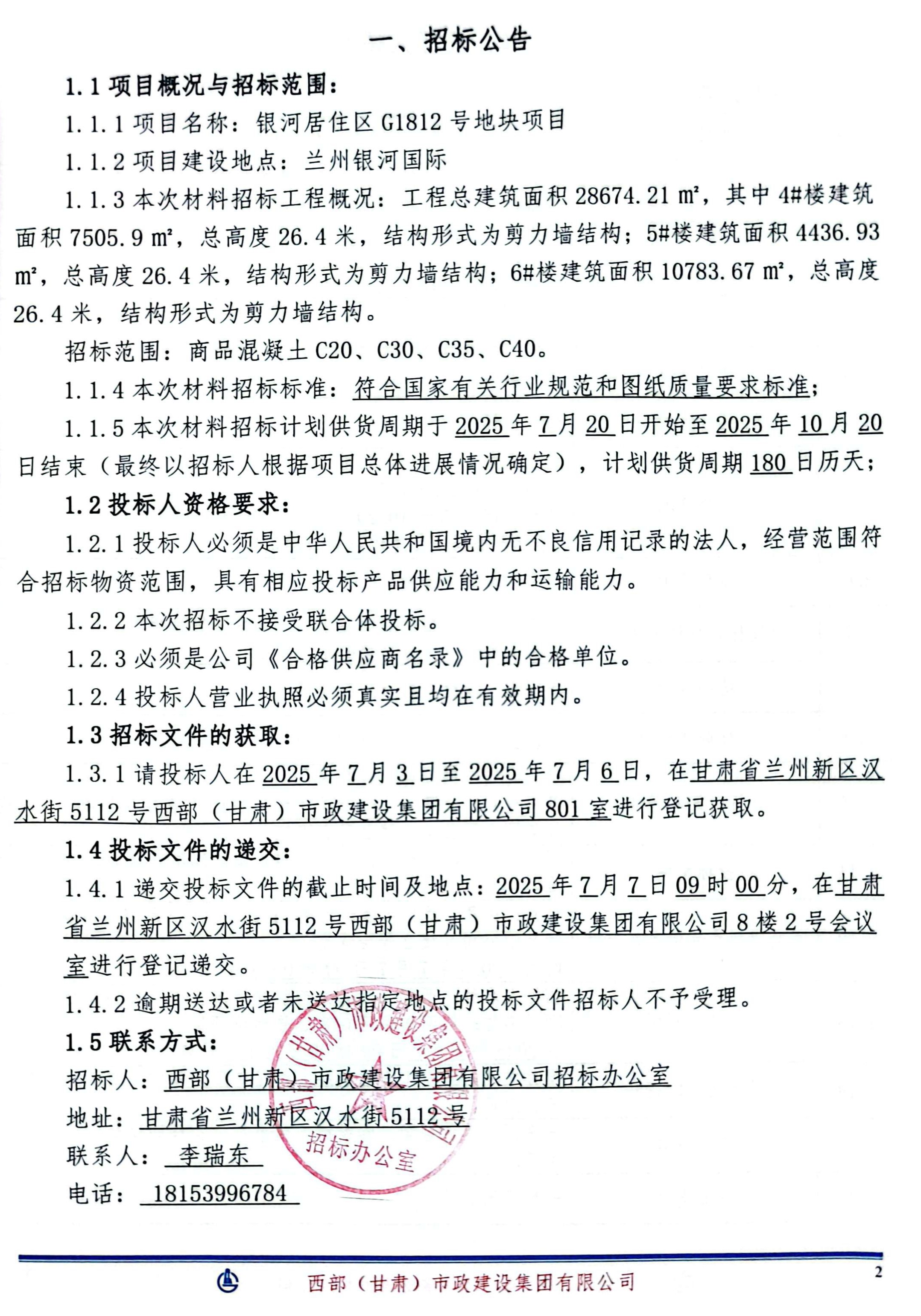 银河居住区G1812号地块项目-混凝土-招标公告